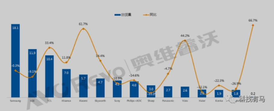 中国企业两极分化进一步加剧,TCL、创维、海信策略不同,但是布局积极,整体向上。长虹康佳掉队严重,虽有举措,但是目的不明,雷声大雨点小。小米依旧强势,但是拿到的市场部分是一些高端品牌有意放弃的,小米有意尝试高端,目前效果未知。以小米的性价比,拓展一些消费力不强的海外市场,应该还有作为。
