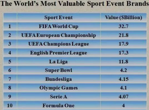 首先,足球是公认的世界第一运动。全球最有价值的20项体育赛事里面有11项是足球,这20项里面前5项都是足球(世界杯、欧洲杯、欧冠联赛、英超联赛、西甲联赛),这11项足球赛事的价值占前20项赛事价值的82%,这就是足球在全球的影响力。当然,看的人多并不能让一个非球迷爱上足球。