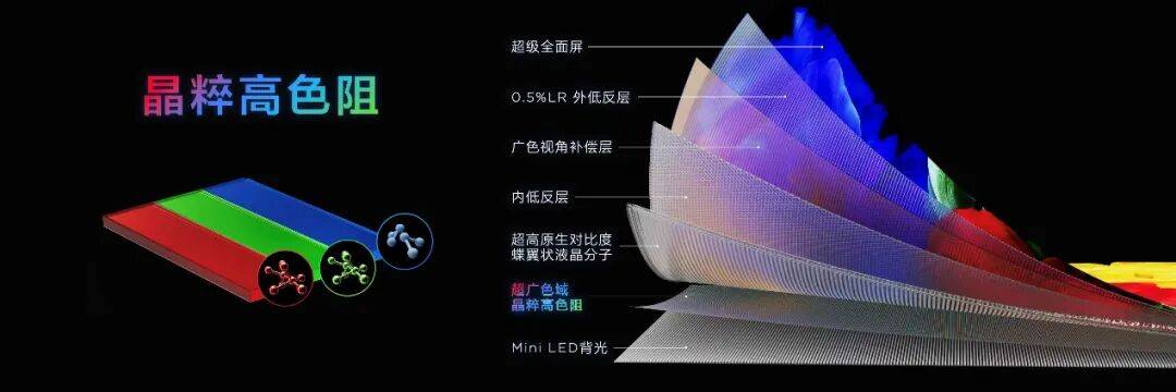 TCL坚定的认为,RGB-Mini LED 的高色域表现具有极强的场景局限性,仅能在显示单色画面时实现;一旦切换到多颜色密集场景,由于 RGB 背光需要全部点亮混合形成白色背光,其原本的高色域优势便会荡然无存。更关键的是,RGB-Mini LED 需要三颗灯组成一组才能发白光,这不仅导致实际可用的分区数量大幅减少,还会因为分色控光的技术限制,出现串色、漏光等问题,最终为了追求极致单色场景的高色域,不得不部分牺牲画面对比度。在 TCL 看来,这种 “单一场景最优” 的技术方案,无法满足用户全场景的观影需求,也成为制约 Mini LED 向高端市场全面渗透的最大障碍。