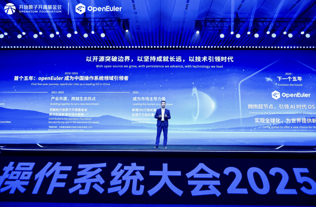 2025 年 11 月,以 “智跃无界,开源致远” 为主题的操作系统大会在北京中关村国际创新中心落下帷幕。这场汇聚全球产业界力量的盛会,不仅见证了 openEuler 全球首个面向超节点的操作系统正式发布,更勾勒出中国开源基础软件从 “跟跑” 到 “引领” 的发展轨迹。