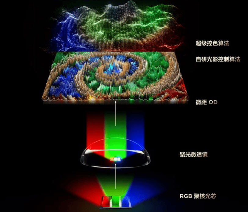 它彻底改变了背光系统的职能。在 RGB-Mini LED 架构下,背光不再只是提供单一的白光,而是直接参与到红、绿、蓝三原色的生成与调配中 。这是一种从“单向度增强”向“全维度平衡”的跨越。