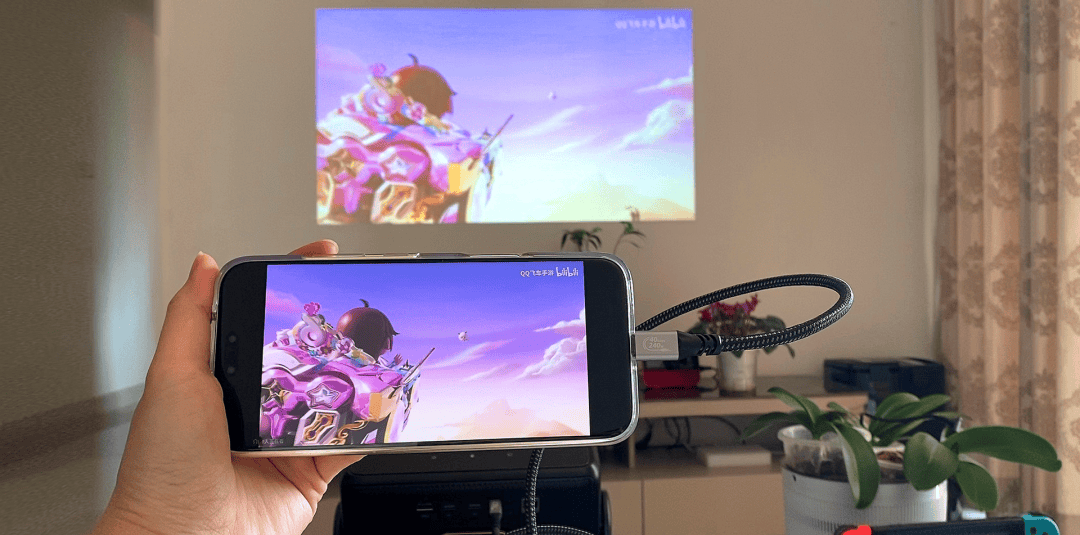 只需要一根线,就能直接连接Switch 2主机和投影仪,投影仪在接收 4K 视频信号的同时,还能通过 60W 的大功率输出反向给主机供电 。想学习的时候,把学习机或者平板往上一连,科普视频瞬间投射到百寸大屏上。孩子兴奋的跟我感叹:“爸,这真是又省心又省眼,鱼与熊掌也可兼得,这样你不会在叨叨我了吧。”