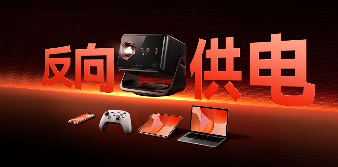 这种极简连接逻辑,极大地拓展了投影仪的应用边界。传统投影的“便携”是打了引号的,因为它依然需要电源线、需要信号线。而在户外露营场景,电量是稀缺资源。有了 GPMI,电车给希影RS 80 Ultra 供电,就可以通过投影仪的反向供电能力 ,将手机、平板或者游戏机等外接设备接入,无需再为它们额外携带笨重的充电器或者接线板 。