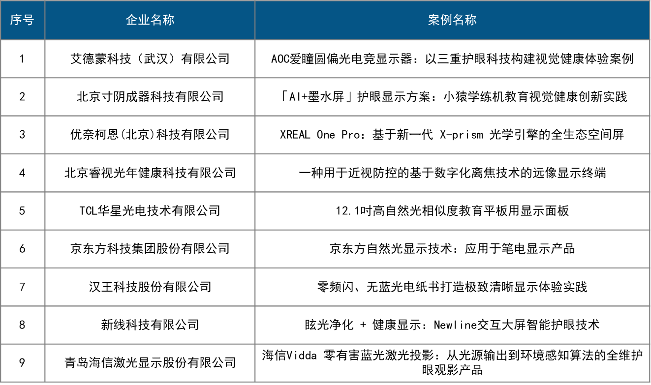 《2025年度显示技术及终端视觉健康应用实践》典型案例名单