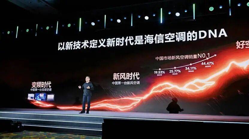 2008 年,当整个行业还困在变频技术的参数内卷中无法自拔时,海信再次跳出同质化竞争的泥潭,推出中国第一台新风空调,一手开创了空调行业的全新赛道。此后十余年,海信持续深耕新风技术,不断突破行业壁垒,让海信新风空调的全渠道占有率,连续多年稳居中国第一,更将空调的核心使命,从单纯的 “调节温度” 升维至 “改善空气质量”,引领整个中国空调行业迈入了健康空气的新时代。