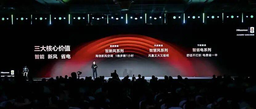 在发布会现场,海信集团副总裁、空气事业部总裁殷必彤的一番话,让我对海信的产品排兵布阵有了更深的理解:“2026 年,我们以用户为中心,进一步明确了海信空调的三大核心价值 ——‘智能、新风、省电’。我们将以‘AI 智能’为主线,面向不同人群推出产品。” 基于此,海信空调构筑起由智新风、智慧风、智省电三大系列及璀璨高端套系组成的完整矩阵 。这是一种放弃了低端内耗,转而用需求分层做大蛋糕的从容布局。