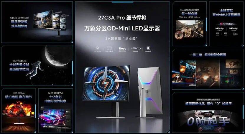 如果说 X3A 是全能旗舰的标杆,那被称为 “细节悍将” 的 C3A Pro,就是为 3A 游戏发烧友量身打造的 “毕业装”。它把 TCL 最核心的万象分区 QD-Mini LED 技术,在桌面方寸之间发挥到了极致。