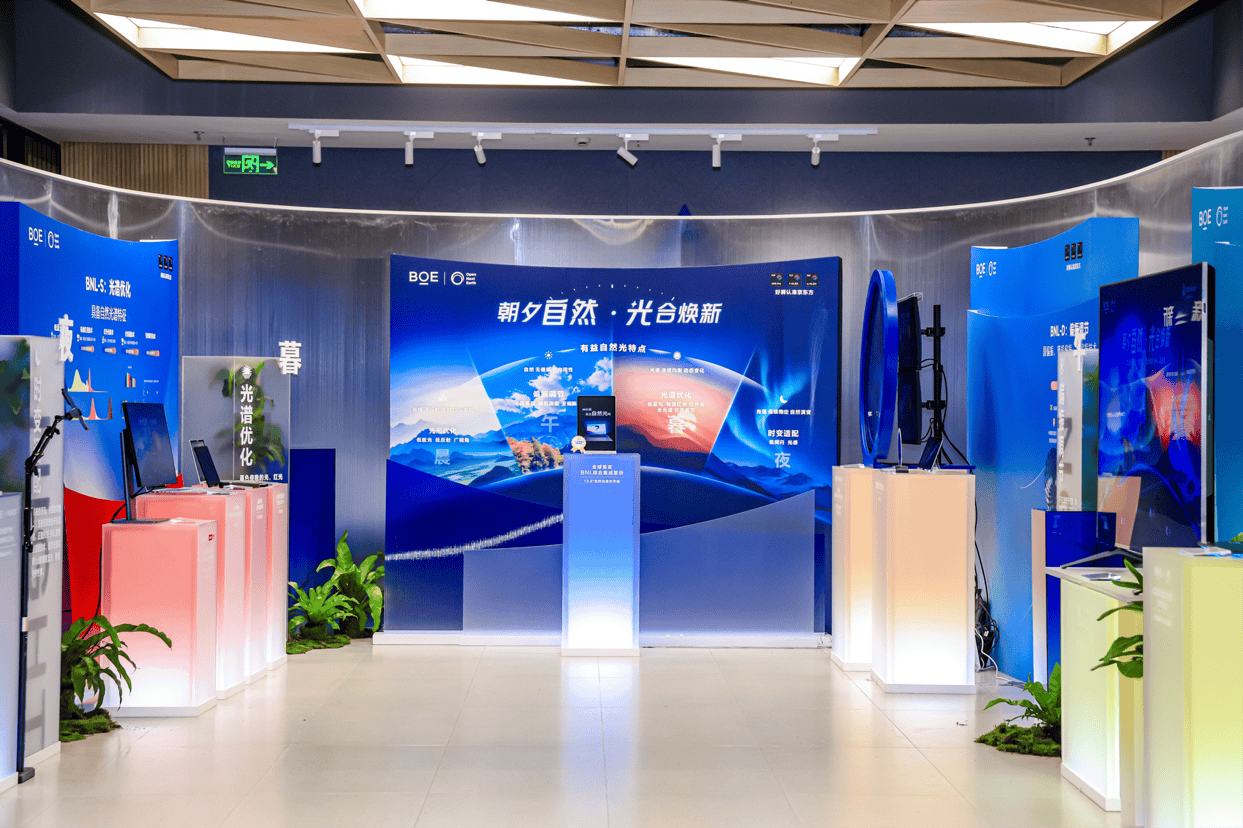 品鉴会现场,BOE(京东方)精心打造了 “晨、午、暮、夜”技术体验展区,多款全球首发的基于“自然光”显示技术(BNL)产品与生态伙伴产品集中亮相,生动诠释了BNL技术如何解决用户在真实场景中的视觉健康痛点。
